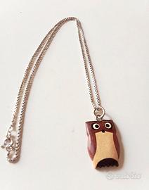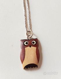 CATENINA ARGENTO 925 E GUFETTO PORTAFORTUNA LEGNO