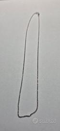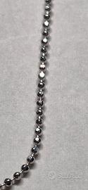 catenina in Argento 925 rodiato con peso in grammi 2 g, con possibilità di aggiunta targette e ciondoli di varie forme (tonda 20 € 3,15 grammi ,rettangolare 30€ 3,90 grammi ,ovale allungata stile militare 60€ peso 9,15grammi) oppure ciondoli a forma di corno porta fortuna in Argento e laccato per 10 euro ,incisione su targhette costo 10 euro