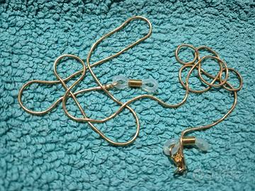 Elegante catenina per occhiali. - Design a serpente. - Finitura dorata. - Terminali in silicone per un aggancio sicuro.