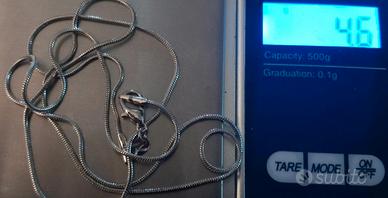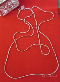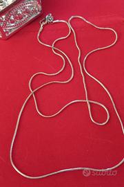 Elegante e versatile, questa catenina dal design lineare SNAKE è realizzata in PURO ARGENTO925. Un accessorio UJISEX perfetto da indossare da solo per un look minimal o abbinato ai ciondoli preferiti.Materiale: Argento 925 (punzonato)Lunghezza: 60 cm.Spessore catenina:1,2mm.Peso: 4,6 grammi.Condizioni: Nuova! 💎 Consigli per la cura: Per mantenere la splendida lucentezza dell'Argento 925 nel tempo: Pulire regolarmente con un panno morbido specifico per argento. Evitare il contatto prolungato con profumi, creme o prodotti chimici aggressivi.