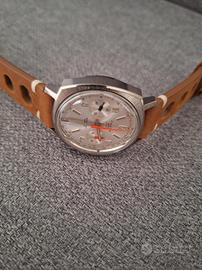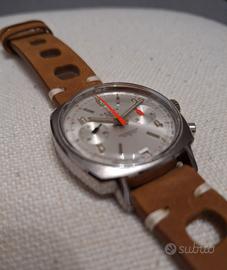 Cauny Prima waterproof chrono meccanico a carica manuale degli anni 70 in ottime condizioni. Stessa cassa in acciaio inox dell' heuer camaro di quei tempi, misure 38 x 45 esclusa corona, molto raro da trovare in questa configurazione. Movimento landeron con datario, perfettamente funzionante, appena fatto visionare da famosissimo orologiaio della città ed appena sostituiti ancoretta dello scappamento ed albero di carica. Cinturino in pelle tipo rally racing nuovo + un'altro in regalo.