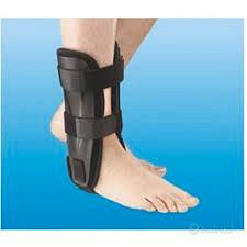 Cavigliera bivalve realizzata con schiume auto modellanti indicata per la stabilizzazione dell'articolazione Tibio-Tarsica in caso di distorsioni.