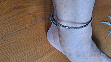 elastica, quasi doppio giro, regolabile. Mancano 3 strass alle punte.