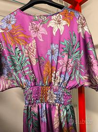 abito nuovo lungo con spacco e arricciatura elastica sul retro mai indossato taglia unica vendo con giacca Celyn b usata forse 2 volte con ancora le tasche da scucire, la taglia è segnata come una 46 ma veste una 40/42