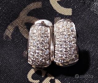 Vendo orecchini a cerchio bombati con pave' di brillantini veri (no schegge)e di ottima qualità. Peso 11gr oro bianco 18carati. Diametro del cerchio 1,30 cm. Non ho certificazioni perché fanno parte di una eredità. No perditempo e richieste ridicole.