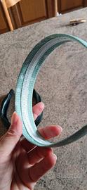 coppia di cerchietti da ragazza:uno in tessuto color turchese a pois bianchi e uno in pelle nera con un nodo