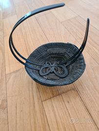 Cerchietto fatto a mano, mai indossato. Fiore in vera pelle morbidissimo. Elegante