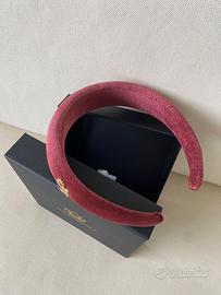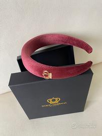 Gioiello per capelli cerchietto Dolce&Gabbana in velluto di color rosa scuro borgogna con dettaglio dorato.