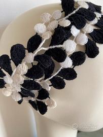 Con pizzo bianco e nero vintage, anima del cerchietto in ferro sottile 5 mm rivestita in raso nero