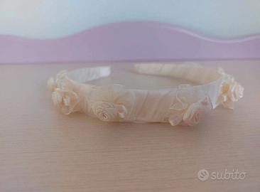 Vendo cerchietto di panna fiorellini in raso per capelli per abito da cerimonia per bambina INDOSSATO UNA SOLA VOLTA, come nuovo. Prezzo 10 euro.