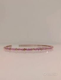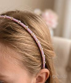 Splendido cerchietto per capelli realizzato interamente a mano con estrema cura e precisione. Un accessorio che unisce l'eleganza senza tempo dell'oro alla delicatezza delle perline, perfetto per chi ama i dettagli raffinati e l'artigianato autentico. ✨ Dettagli del Prodotto: Materiale: Base in acciaio resistente color oro, sottile ed elegante. Lavorazione: 100% manuale e artigianale. Ogni singola perlina è stata applicata a mano con un intreccio meticoloso. Composizione: Il decoro è formato da ben 277 perline, scelte per creare un gioco di luce delicato e sofisticato. Dimensioni: Misura da orecchio a orecchio di 12 cm (misura standard ideale per bambine e ragazzine. Molto confortevole. 🎀 Stile e Ispirazione: Lo stile è romantico e bon-ton, con un richiamo all'estetica "minimal luxury". Grazie alla sua linea sottile, non risulta mai eccessivo, ma aggiunge un punto luce prezioso all'acconciatura. 💖 La vera chicca di questo accessorio è la sua ispirazione: il design delicato e la scelta delle perline si rifanno alla bellezza eterea dei Sakura, i famosi alberi di ciliegio in fiore del Giappone. Indossarlo è come portare un pezzetto di quella magia rosa e bianca tra i capelli. Spedizione e Garanzia: Imballaggio: Garantito e ultra-sicuro Spedizione: Velocissima (solitamente entro 24/48 ore dall'acquisto). Nota: Questo non è un accessorio industriale da grande distribuzione. È un pezzo creato con passione, pensato per durare nel tempo e per rendere speciale chi lo indossa