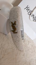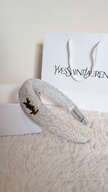 Cerchietto YVES SAINT LAURENT colore bianco/grigio in stoffa completo di scatola busta e sacchetto, mai utilizzato.