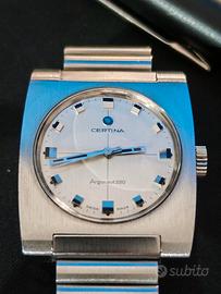 Certina Argonaut 220, carica manuale. Orologi di forma con suo cinturino originale e corona logata (leggera perdita di cromatura sulla corona, non sostituita per lasciare l'orologio nella sua piena originalità). l'orologio è ben conservato e tiene magnificamente il tempo.