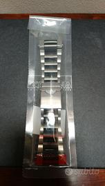 Vendo CERTINA DS MASTER originale usato comparato nel 2016 tenuto da collezione ed indossato raramente (no micro graffi, no micro strisci); nel fondello posteriore è presente ancora la pellicola di protezione originale; il cinturino originale (incluso nella scatola) è in metallo bicolore e quasi mai indossato con tutte le maglie poiché ho comprato fin da subito il cinturino originale CERTINA in caucciù nero (130 euro) che regalo tuttavia è già stato regolato per il mio polso; pila cambiata due anni fa.