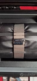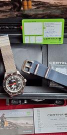 Certina DS PH200M Powermatic 80 C036.407.11.050.00 Cassa in acciaio inox da 42,8 mm di diametro finitura satinata con lunetta nera girevole unidirezionale con scala - Quadrante nero con lancette e indici rivestiti in SuperLumiNova che si distinguono perfettamente anche al buio – Datario – Corona a vite - Fondello con impressa la famosa tartaruga, simbolo del marchio Certina - Vetro Hesalit a scatola antiriflesso su un lato e rivestimento antigraffio NEX Scratchguard - anello di sospensione separato, garantiscono una doppia sicurezza – e un'impermeabilità fino a 20 bar - Movimento Calibro Eta Powermatic-80 con riserva di carica di 80 ore – L’orologio è completato da un confortevole cinturino in tessuto Nato blu con fibbia ad ardiglione e, per un uso elegante, da un cinturino in acciaio maglia Milano originale con chiusura a scomparsa Ottime condizioni, alcune airlines da normale utilizzo su clasp facilmente rimovibili – full set – scatola contenitore a tenuta stagna – card - libretti