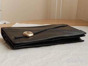 CESARE PICCINI - Firenze borsa a mano vintage, pochette in vera pelle nera, un pezzo autentico di artigianato toscano realizzato con materiali pregiati, Made in Italy, foderata in tessuto logato, tasca interna, con due passanti interni in pelle per inserire eventualmente una tracolla (non inclusa), pattina sul davanti con un bottone a pressione, tasca sul dietro.