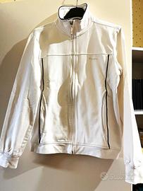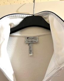 Bellissima felpa Champion per adolescente, di colore bianco, aperta avanti con cerniera, due tasche e rifiniture in grigio/blu, ampiamente utilizzabile e abbinabile nelle occasioni più diverse. Senza alcuna imperfezione, ottima qualità. Taglia M adolescente, XS donna.