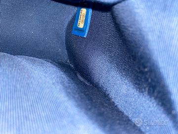 Vendo originale e bellissima borsa Chanel Boy, in pelle di agnello color bluette, metalleria in rutenio e lavorazione a spina di pesce.