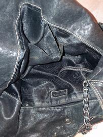 Chiusura: Bottone magnetico centrale che permette di regolare leggermente la forma della borsa.