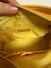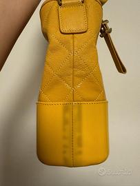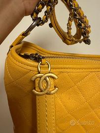 Borsa hobo Chanel Gabrielle, giallo brillante, pelle cerata trapuntata a rombi, doppia tracolla a catena.