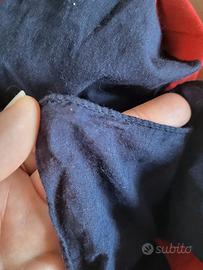 Molto grande. In morbidissimo cotone, con stampa a rigoni blu e rossi. Bellissimo. Usato poco. Assolutamente autentico come tutto ciò che vendo.