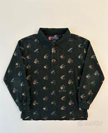 Polo vintage anni ’90 di Chaps Ralph Lauren, taglia M. Stampa all-over con mosche da pesca (fly fishing) con i nomi delle esche stampati sul tessuto: Stone Fly, Silver Prince… Spedizione rapida e imballaggio curato. Capo lavato e igenizzato.