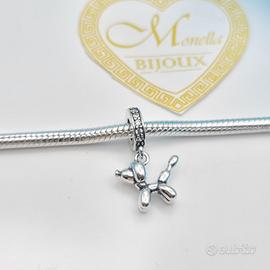 Bellissimo charm per bracciale Pandora composto da un anello decorato con zirconi che si infila nel bracciale, a cui è agganciato un ciondolo a forma di cagnolino cane barboncino fatto con i pallonciny come nei party. Lo charm è nuovo in argento 925 Lo charm non è di nessuna marca ed è compatibile perfettamente con tutti i tipi di bracciali per charm compresi i Pandora. Nuovo con scatolina regalo. Contattaci per info ed acquisti multipli. Dai un'occhiata al nostro profilo, troverai tantissimi articoli simili a bassi prezzi.