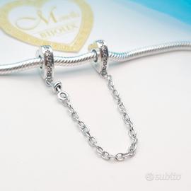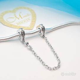 Charm argento 925 catena di sicurezza cuoricini