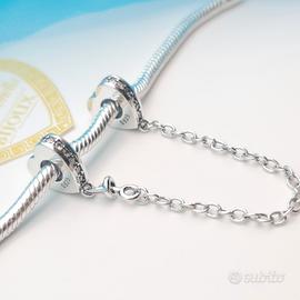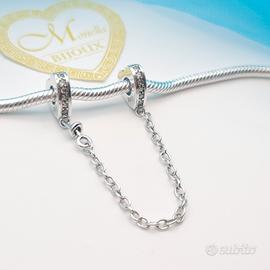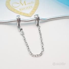 Charm argento 925 catena di sicurezza (modello Pandora) cuori cuoricini zirconi forever Bellissimo charm argento 925 per bracciale Pandora catena catenina di sicurezza composto da 2 anelli che si infilano nel bracciale a forma di cuore decorati con zirconi agganciati tra di loro da una catenina. Tema love. Lo charm è nuovo in argento 925 Lo charm non è di nessuna marca ed è compatibile perfettamente con tutti i tipi di bracciali per charm compresi i Pandora. Nuovo con scatolina regalo. Idea regalo Natale o compleanno Contattaci per info ed acquisti multipli. Dai un'occhiata al nostro profilo, troverai tantissimi articoli simili a bassi prezzi.