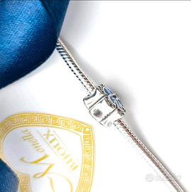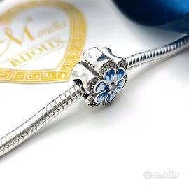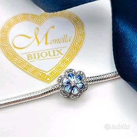 Charm argento 925 Fiore Zircone rosa blu Modello Pandora Portafortuna. Bellissimo charm per bracciali Pandora a forma di fiore, nei toni del blu e dell'argento. - Argento 925 - Dettagli in zirconi - Perfetto per bracciali Pandora Lo charm è a forma di fiore argentato, al centro è presente uno zircone bianco e nel contorno altri zirconi più piccoli; i petali sono decorati a smalto con varie tonalità del blu, creando un bellissimo effetto. Lo charm è uguale su entrambi i lati, quindi anche sul retro ha la stessa decorazione. Lo charm è nuovo ed in argento sterling 925. Lo charm non è di nessuna marca ed è compatibile perfettamente con tutti i tipi di bracciali per charm compresi i Pandora. Nuovo con scatolina regalo. Contattaci per info e acquisti multipli. Dai un'occhiata al mio profilo trovi tantissimi articoli simili a prezzi bassi.