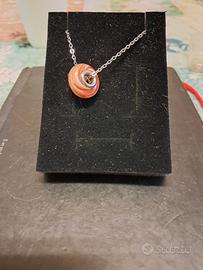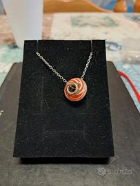 Charm in vetro di Murano prodotto artigianalmente con combinazione di colori rosso bianco verde dove nascono le striature in una base trasparente