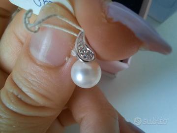 Pendente con perla Akoya Miluna montata su oro bianco 18 kt. Nel gancio del ciondolo è incastonato un piccolo diamante.