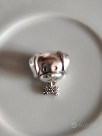 vendo charm originale Pandora in argento con muso di cagnolino e osso con brillantini in condizioni ottime