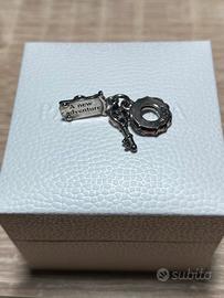 Esprimi la tua passione per l'avventura con il charm pendente Chiave e signor Serratura della serie Alice nel paese delle meraviglie Disney. Rifinito a mano e realizzato in Argento originale Sterling 925, il charm evoca un momento indimenticabile dell'iconico film Disney: Alice che parla con la serratura magica. Il gioiello all'insegna dell'avventura presenta una chiave con lavorazione openwork e una serratura in 3D decorata da un viso ricco di dettagli realistici. Sul retro è incisa una citazione del film: "Una nuova avventura".