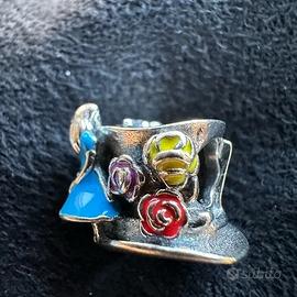 Scegli un gioiello eccentrico e originale con il charm Alice nel paese delle meraviglie e tea party del Cappellaio matto della serie Disney.