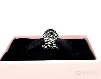 Indossa il potere dei regni con il charm Il Trono di Spade, della collezione Game of Thrones x Pandora. Il gioiello è realizzato in Argento Sterling originale 925, con dettagli elaborati che riproducono le spade dei nemici sconfitti che formano il trono, ed è impreziosito da un cristallo verde creato in laboratorio. Il trono rappresenta la storia, le tradizioni e le battaglie per conquistare i Sette Regni, ed è perfetto per portare sempre con te il simbolo della tua storia preferita.