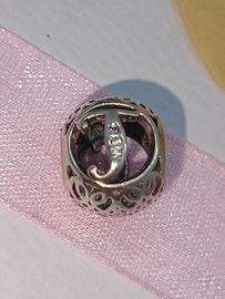 Charm originale Pandora in argento sterling 925, perfettamente punzonato con ALE S925, garanzia di autenticità. Presenta la lettera maiuscola “T” con pavé di zirconi cubici trasparenti su un lato e un elegante disegno traforato con cuori e simboli sull’altro, tipico della collezione vintage di lettere Pandora.