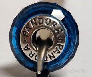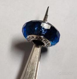 Charm Pandora in vetro di Murano blu sfaccettato con glitter. Originale