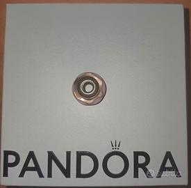 Delizioso charm originale Pandora in vetro di Murano rosa decorato con delicati pois bianchi, con anima in argento sterling 925.