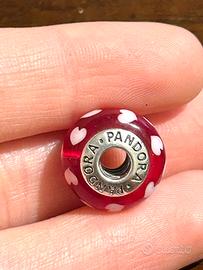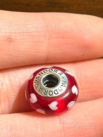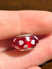 Ciondolo pandora colore rosso con cuori colore bianco In vetro di murano