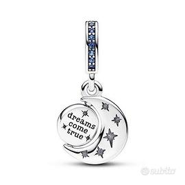 Celebra la bellezza del cielo notturno con questo Charm Pendente Luna Girevole. Realizzato in Argento Sterling 925, il charm presenta una luna crescente decorata da cristalli creati dall’uomo con taglio cabochon rotondo in tre diverse tonalità di blu. Nella curvatura interna della luna crescente si trova un piccolo disco girevole in Argento Sterling originale 925 dipinto con smalto blu scintillante su un lato, mentre sull’altro reca l’incisione “Dreams come true” (I sogni diventano realtà). Indossa questo charm pendente per ricordare di inseguire i tuoi sogni, ogni giorno.