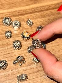 17 charm 3 clip bloccanti 1 catenella di sicurezza. Valore nuovo 470 euro Tutto per 150 euro Il charm con i girasoli ha un petalo mancante