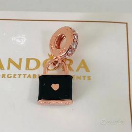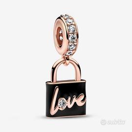 Celebra l’amore eterno con il nuovo charm Pendente Lucchetto “Love”. Questo lucchetto nell’esclusiva lega metallica placcata oro rosa 14k è rifinito a mano ed è dipinto da smalto nero, che mette in risalto la scritta lucida in rilievo sulla parte anteriore e il cuore sul retro. La scritta “Love” è decorata da una pietra di zirconia cubica incolore incastonata nella “o” per adattarsi al gancio con pavé scintillante. Sul fondo del lucchetto è presente l’incisione “Precious to me” (Preziosa per me). Importante: il lucchetto non può essere aperto perché simboleggia il forte legame d’amore.