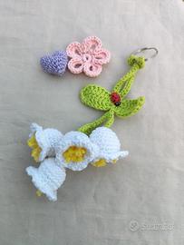 Charm per borsa a forma di campanella. Di colore bianco con coccinella in legno decorativa. Bello per dare un tocco di primavera agli accessori del tuo outfit.