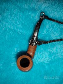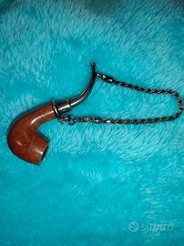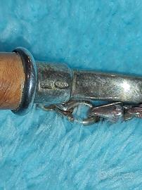 Splendido ciondolo da taschino anni 60 in argento 925 nel boccaglio e nella catena e radica di noce. Utilizzabile anche come portachiavi. Sicuramente un oggetto esclusivo ed elegante.