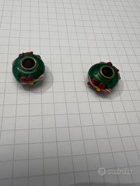 2 charms in vetro verde a tema natalizio con candy cane (bastoncino di zucchero) applicato No marca