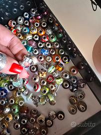 Vendo 180 charms perfette per bracciali Pandora e Trollbeads, realizzate artigianalmente, in autentico vetro, dai maestri vetrai a Murano, montati su argento 925, ognuna è marchiata.