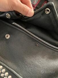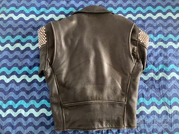 Chiodo borchiato come si vede in foto. Sono state applicate circa 3000 borchie a cono. Alcuni punti da recuperare. Taglia M. Possibile spedizione.