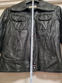 Chiodo di pelle da donna Praticamente nuovo Leggero e comodo Nero Taglia s Colletto un po più lungo del solito