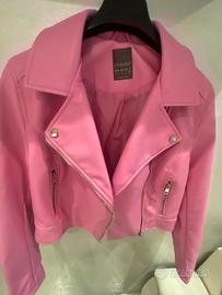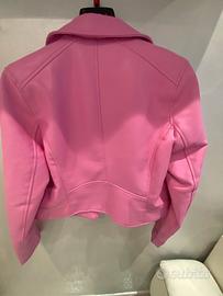 Giacca stile chiodo in un vivace colore rosa. ヘ - Design corto e moderno. - Chiusura con zip asimmetrica. - Tasche laterali con zip. - Collo a revers.